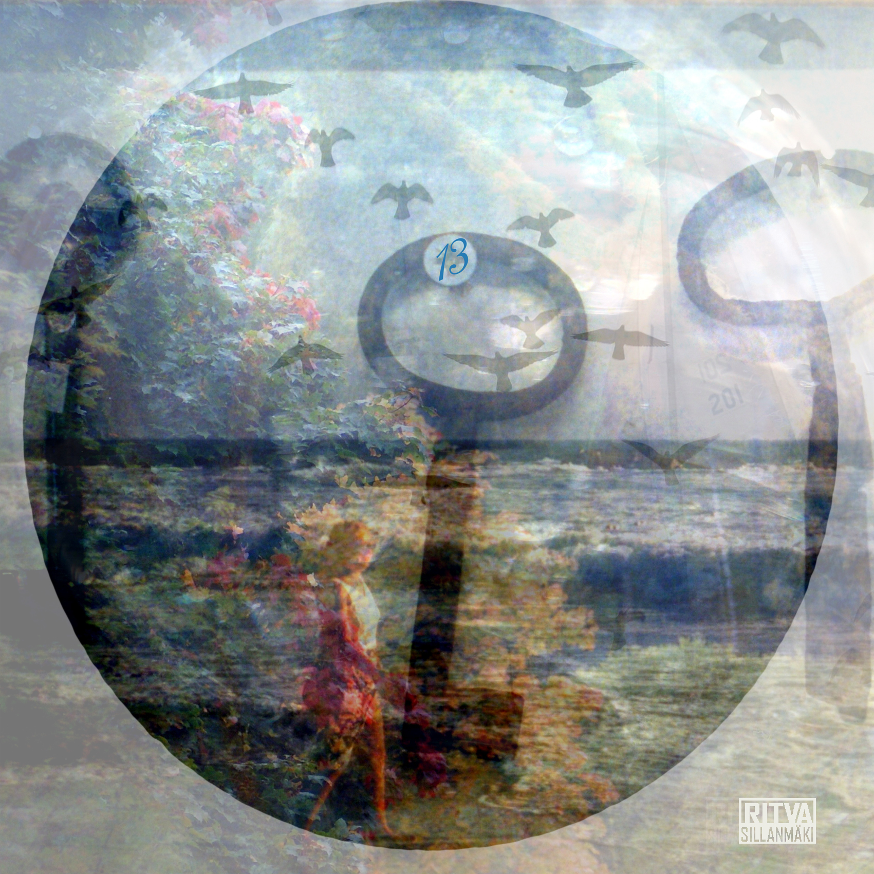 Monikerroksinen mandala. Numero ja linnut, molemmissa kolmetoista. Kauniisti toteutettu.