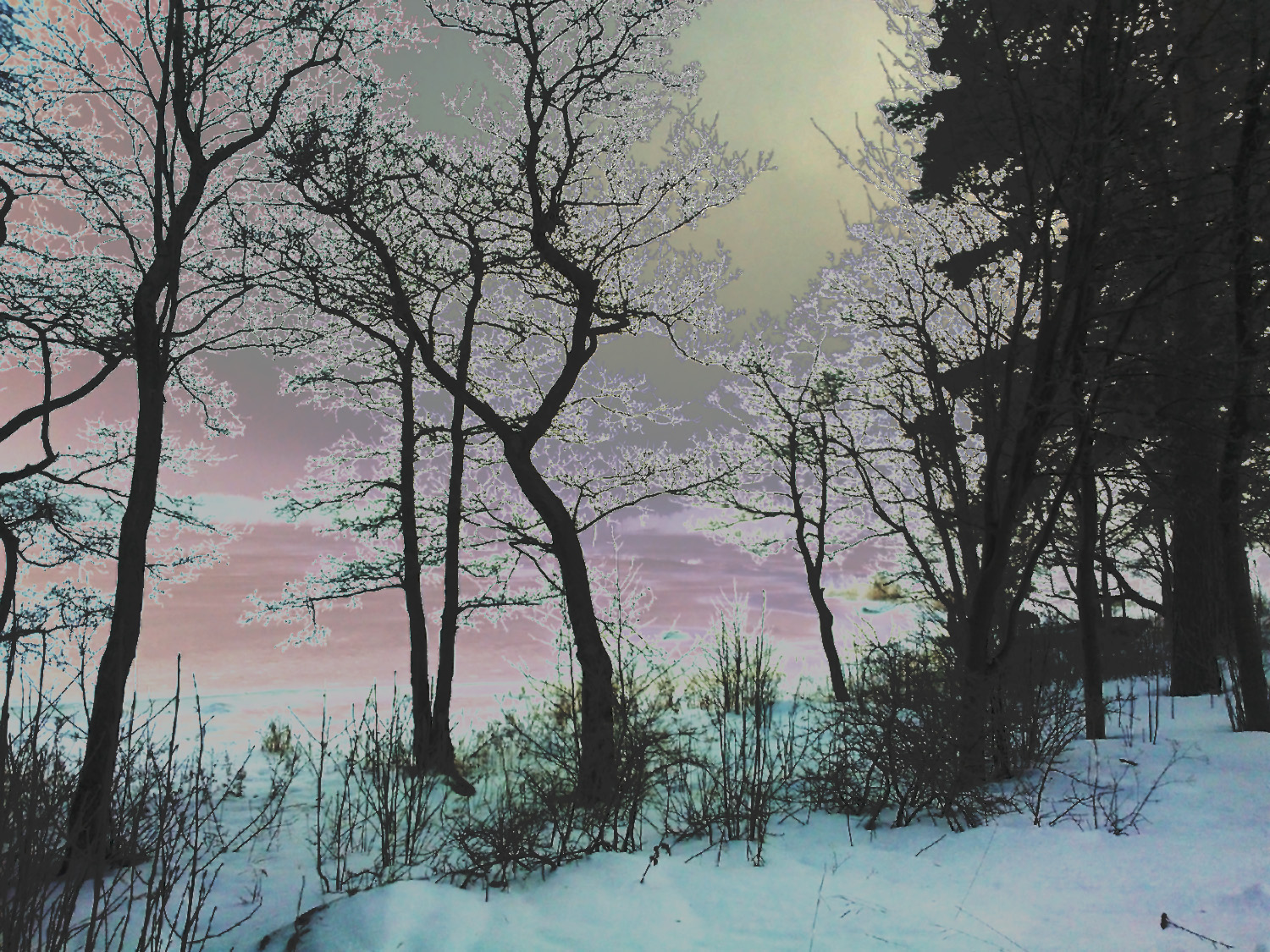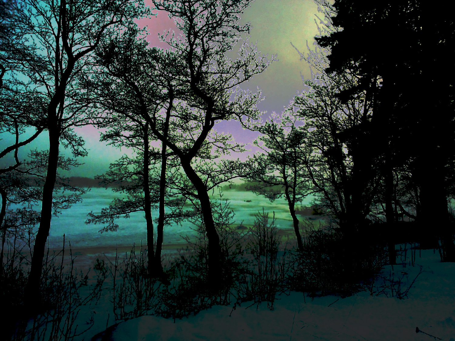 All this darkness makes me seek out colors – today it has been raining. Everything is back to grey and slush – I had to cheer myself by creating something colorful. The first is the unedited version of a misty sea view.