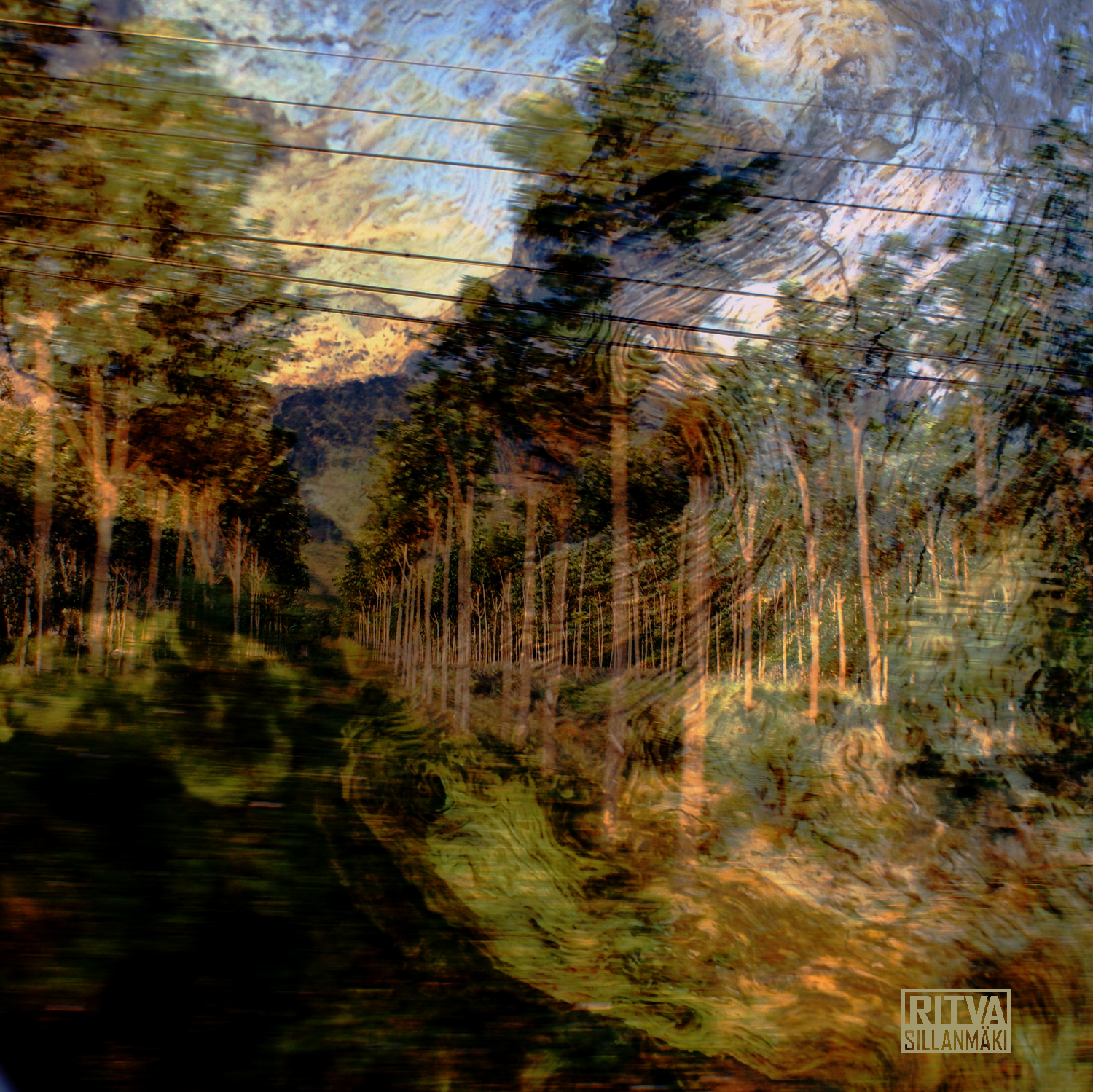 2. Pidän kaikista kolmesta kovasti. Kaksi ensimmäistä ovat kuin tapahtuma, valaistuksen muutos. Kimmeltävien värikerrosten ja kiinteän kiven kontrasti on tehokas. — Puukuvassa aika virtaa levollisesti, ikuisesti. Sähköjohtojen (?) viivat syöksyvät läpi, kuin ohikiitävä hetki.
