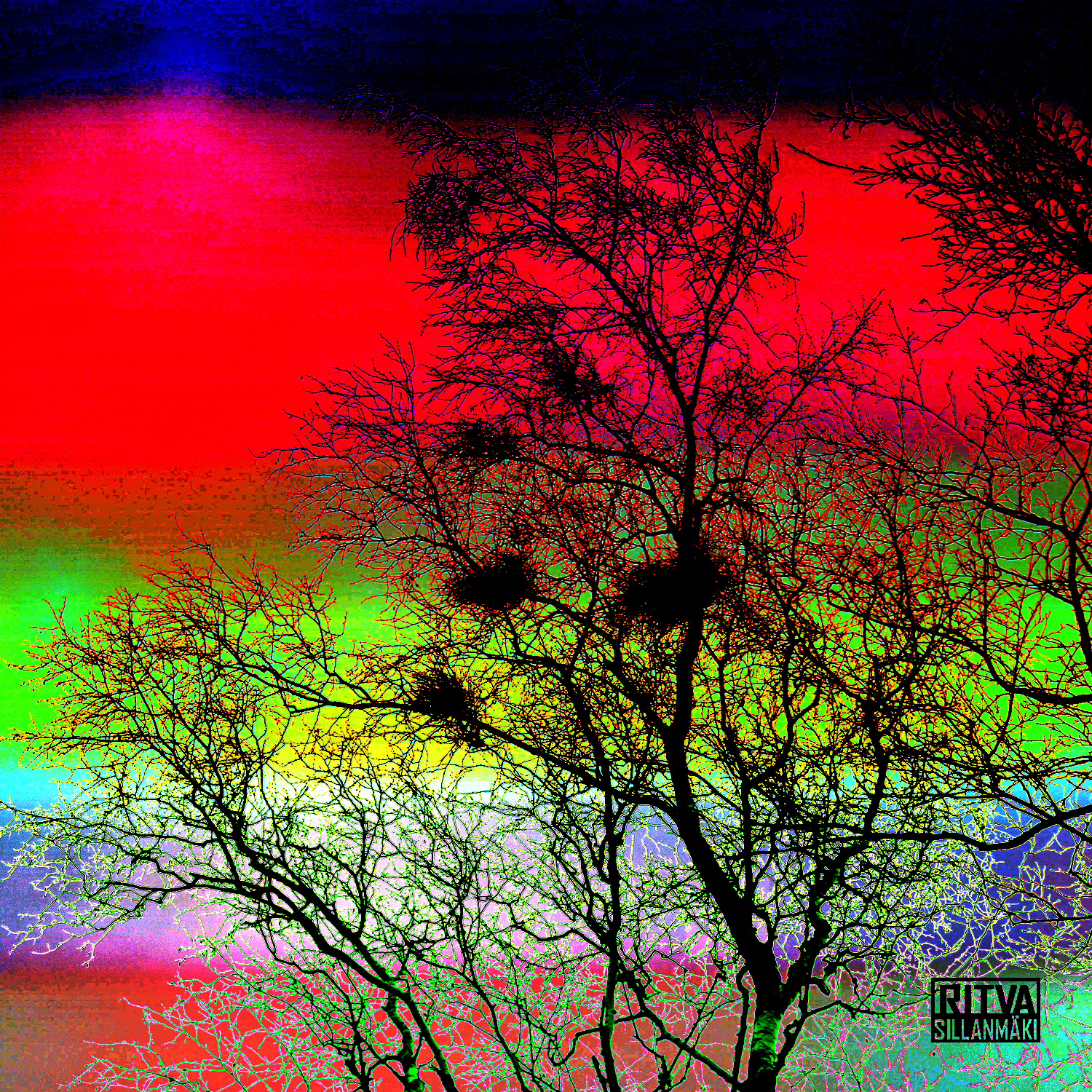 First I had the tree..added an orange background to it into it… then and eye of a lady… them my imagination went riot and this is the end result. I love colors so I have added here others than orange.