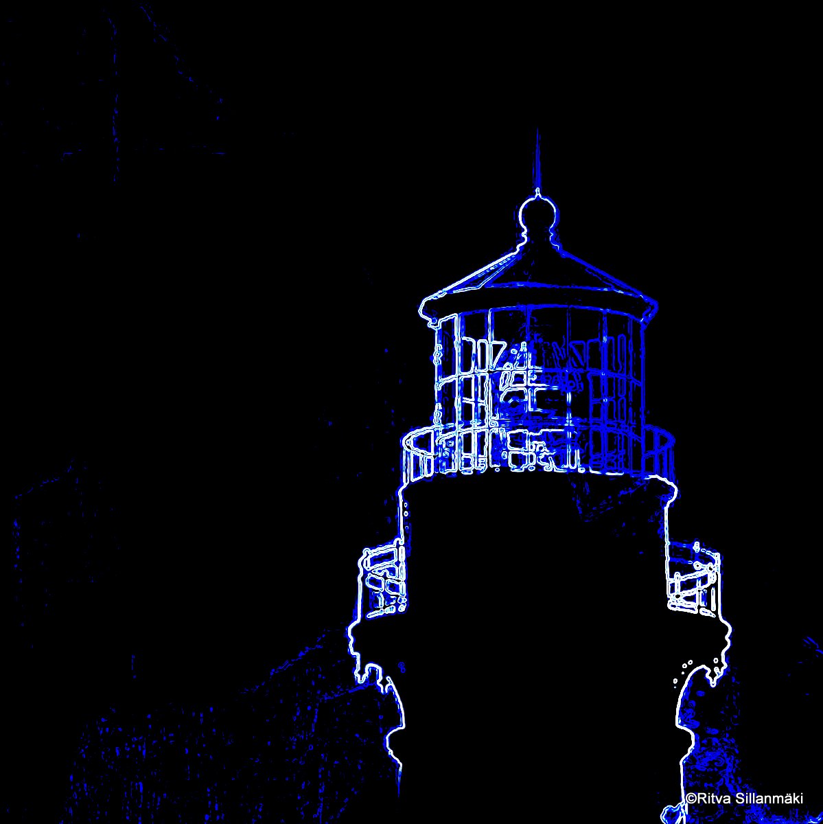 1. The first one is a great textire of shades pf gray with the one spot of color for an accent. The electric juxtaposition of the blue and white on the black for the lighthouse is great.