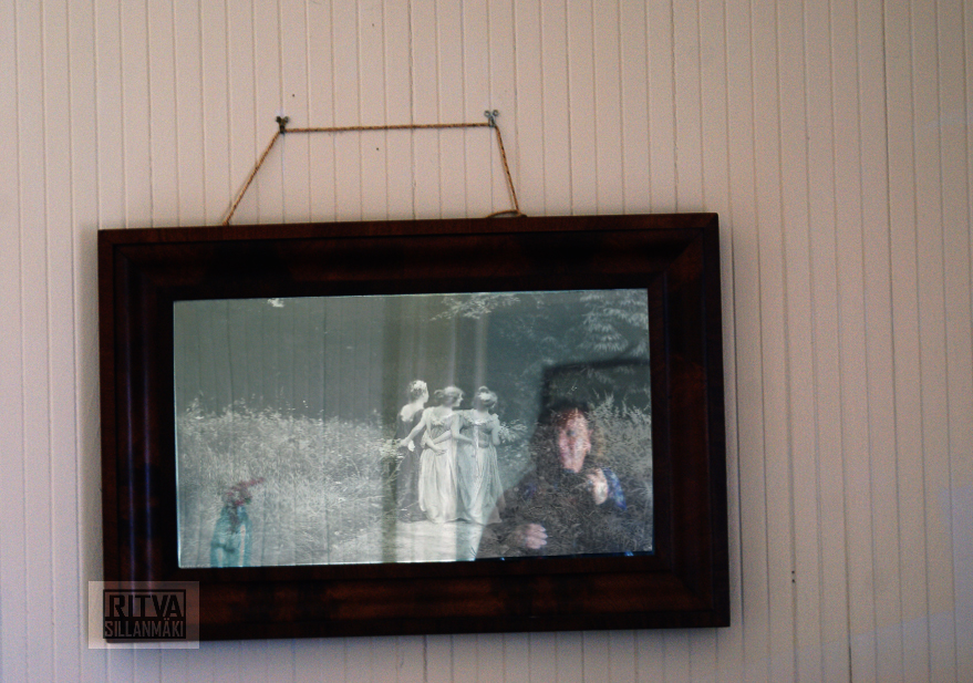 In the first one the girls are emerged in to the colors of grass and wheat fields to bring texture. Original photo of my mother and her sisters. In the last two the black and white photos have been placed into both the frames and photos in them,