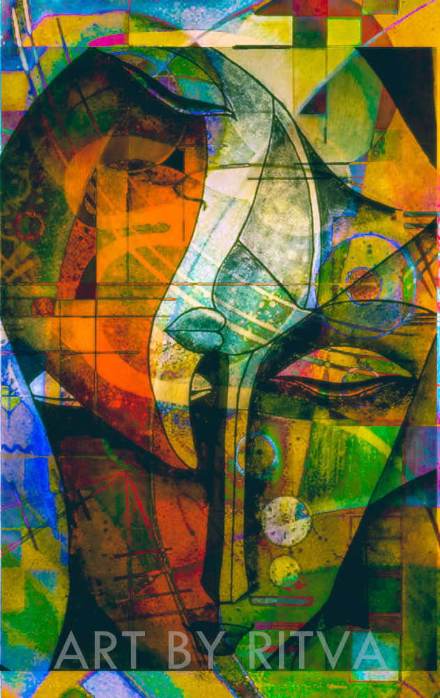 My attempt of Cubist artwork, where objects are analyzed, broken up and reassembled in an abstracted form—instead of depicting objects from a single viewpoint, it depicts the subject from a multitude of viewpoints to represent the subject in a greater context.