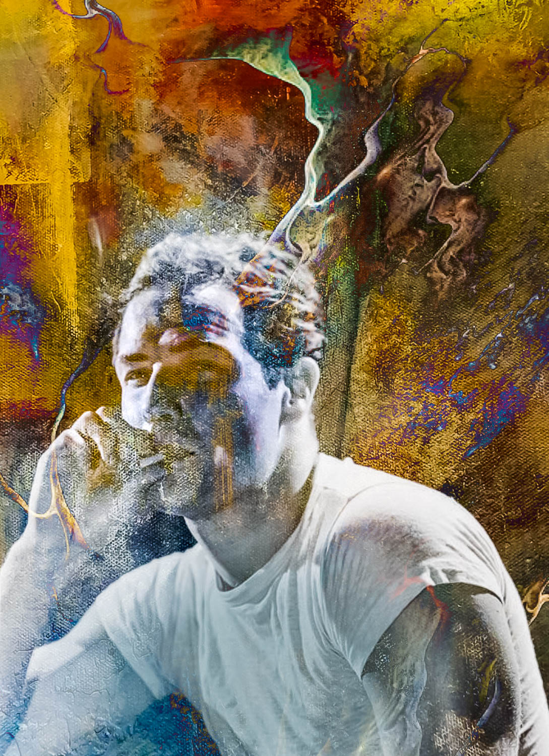 The bold and warm orange color speaks volumes to me. Emotional warm, fiery even passionate. Absolutely inviting. As is the charisma of Marlon Brando. Smoke, casual, that is my artistic take on this photo of Marlon.