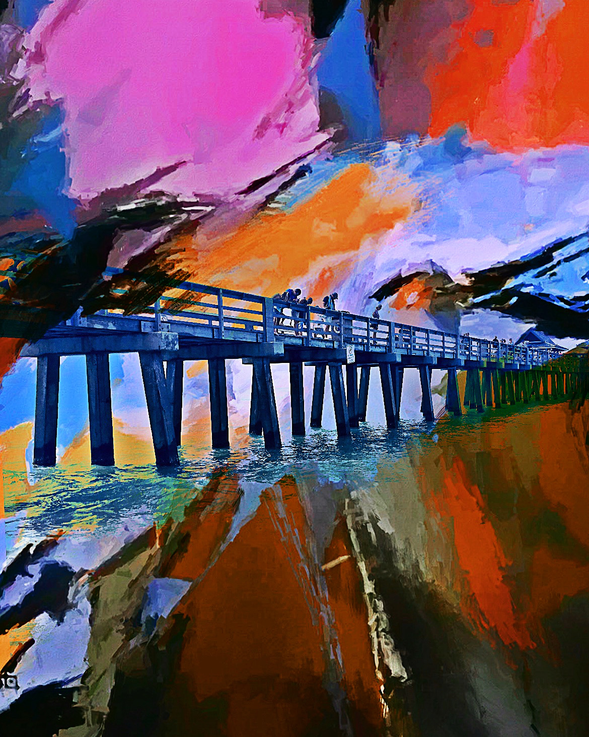 Little bit different approach to this one. Naples Pier was the inspiration to this one and sunset always gives positive vibes to me at least. I have given more room for the painting in this piece, colors in blocks rather that smaller details.