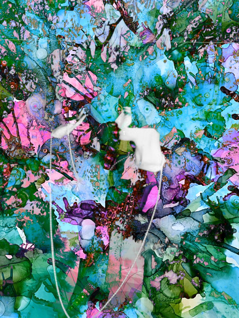 I did several takes on this mixed media style, it has my oil ink painting as the base and then I added textures and other elements to change it. Playing with colors the mood changes,