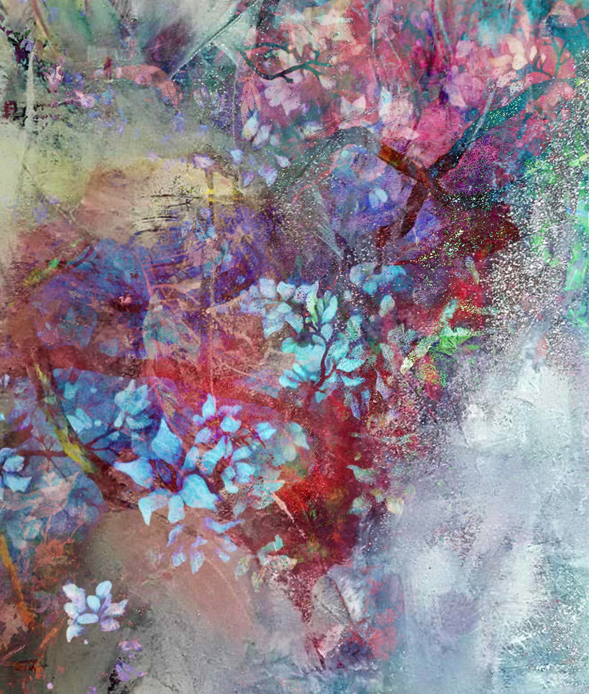 I made several version of this, all same, but different. The colors or lack of it makes the statement. These mixed media works include old photographs, layers of flowers and texture and the power of colors. Hope you enjoy them.