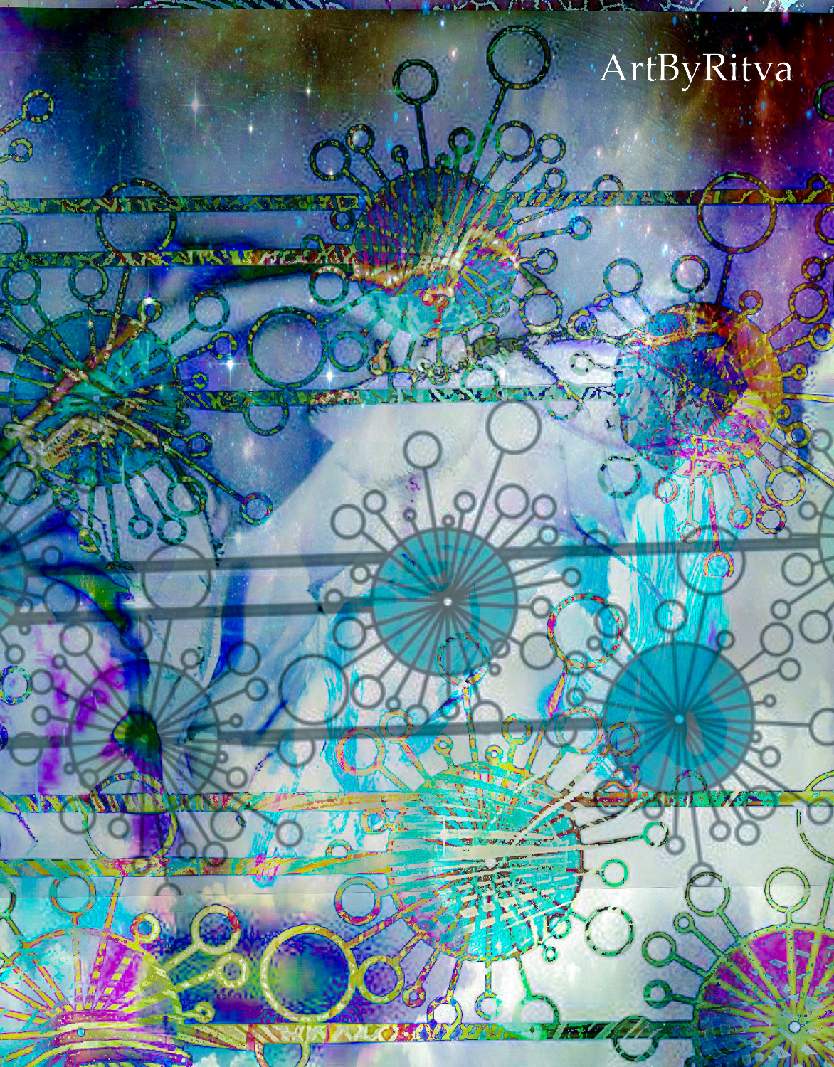 These three color versions of circles, are the most vibrant ones that I did. There are lots of circles and colors in the background, the pattern is rather busy, maybe too much so. This is a like children’s challenge tp draw as may circles as you can 😂. I am trying to find a balance, still clearly a work in progress. I am always interested how the color variation of work, changes the mood of a artwork, even in these more graphic designs.