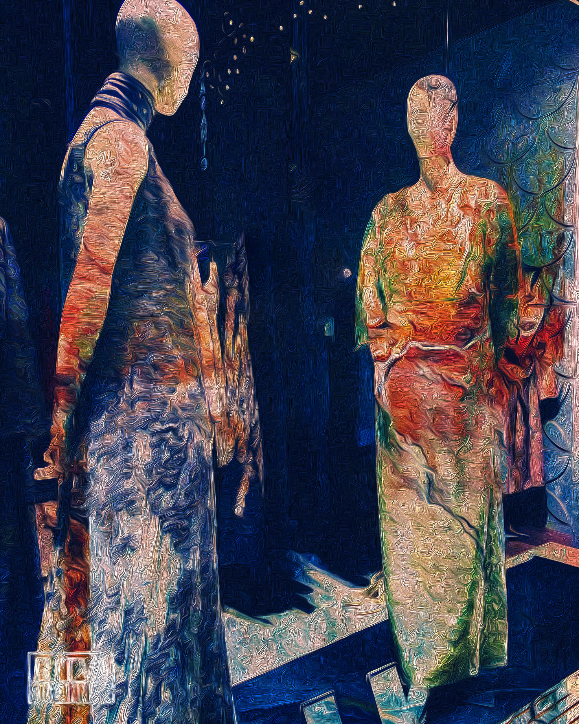 See how the textures change this painting of ladies, that I’ve done from a photo of mine taken when window shopping . Just the contrast and vibrance of the colors make a hufe difference. How so you see the variations?