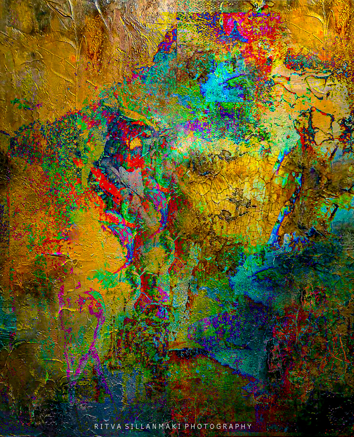 My work is predominantly colorful, imaginative photomontages. It combines photos of nature and people with structural layers made using old photographs, my paintings, and sculptures. Hope you enjoy this one.