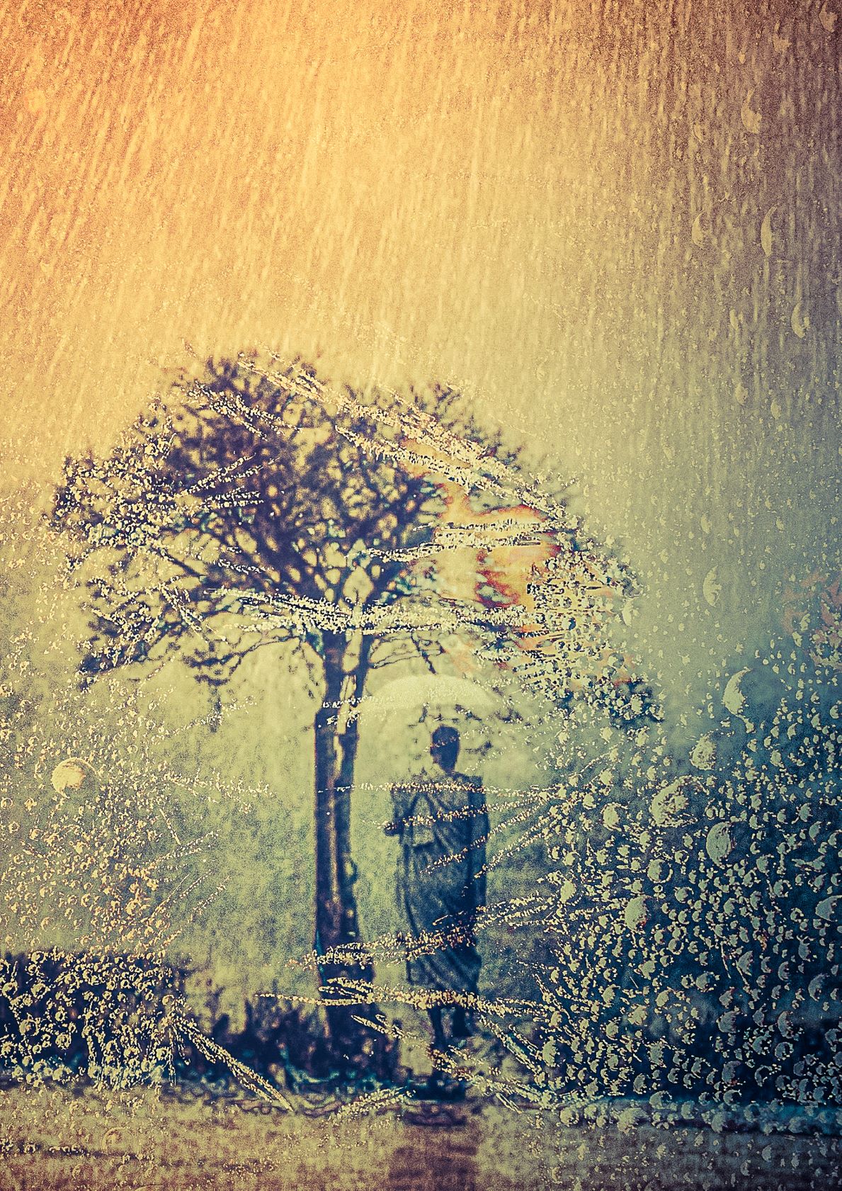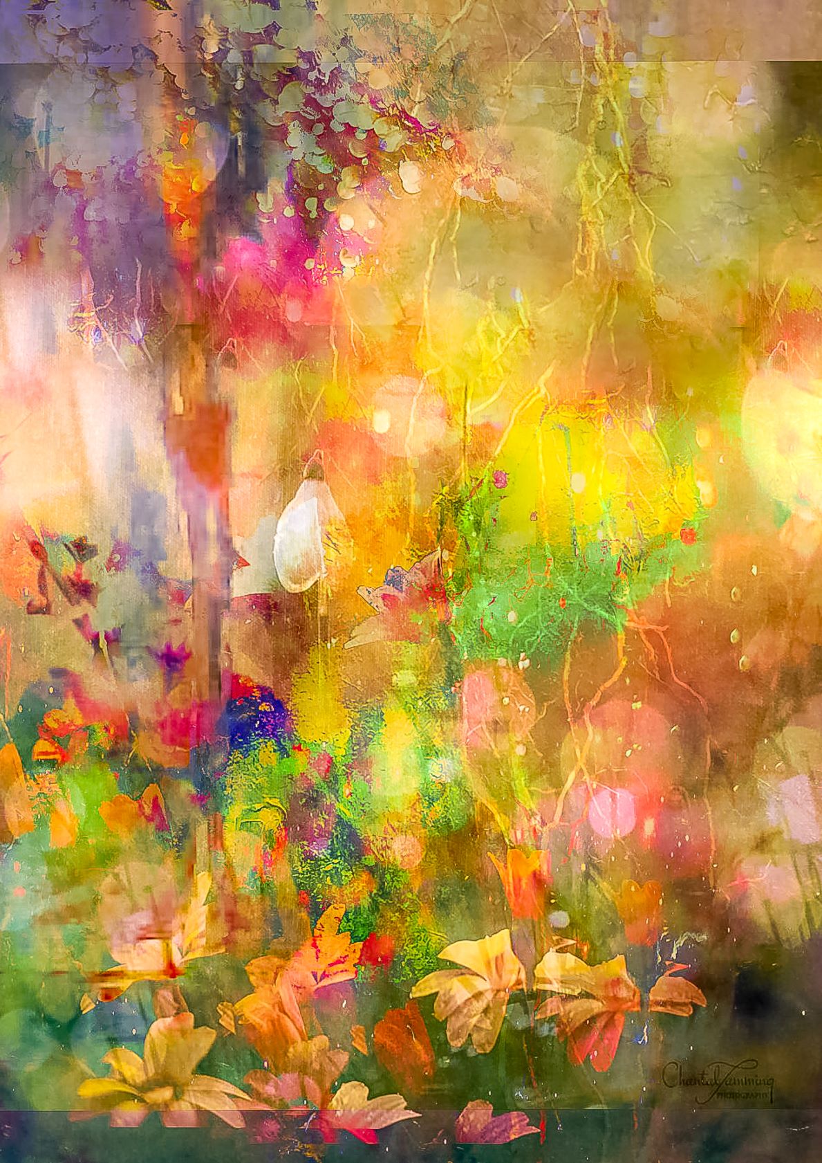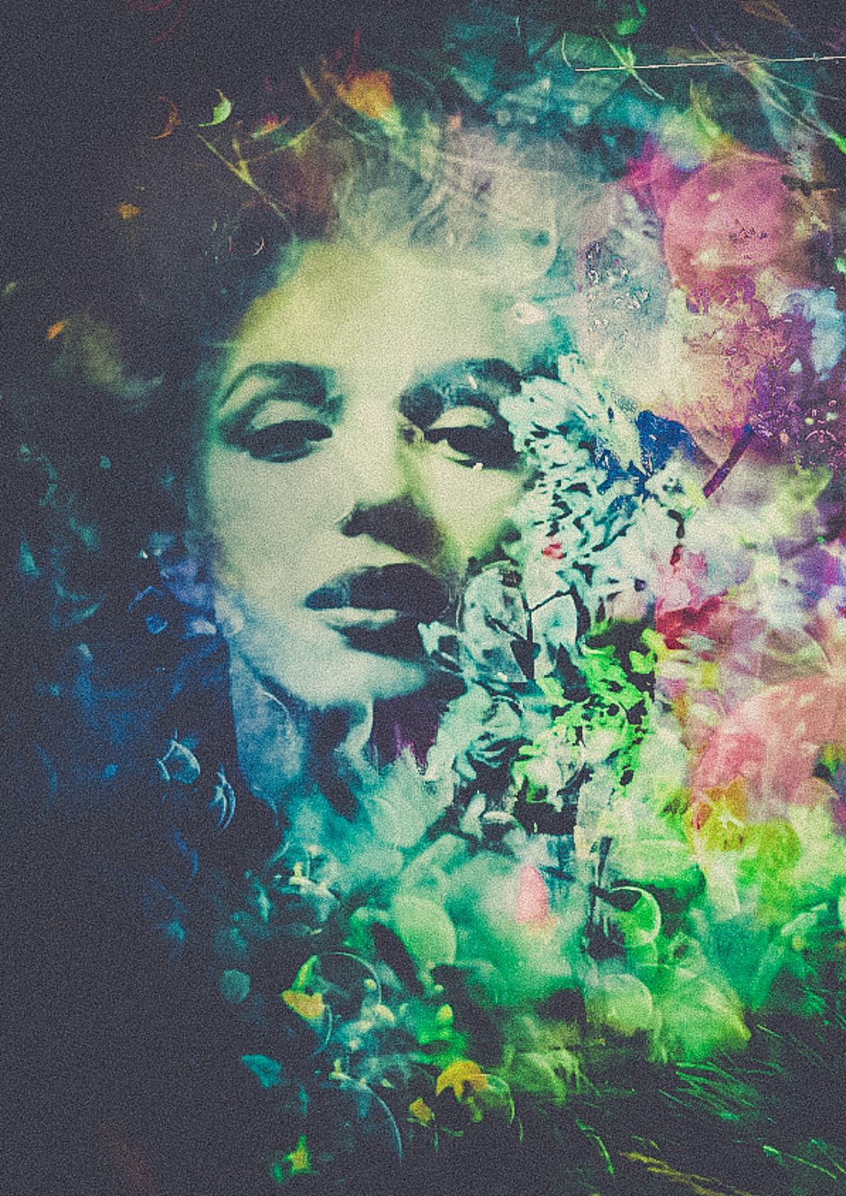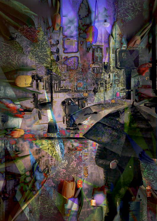 My work is predominantly colorful, imaginative photomontages. It combines photos of nature and people with structural layers made using old photographs, my paintings, and sculptures.