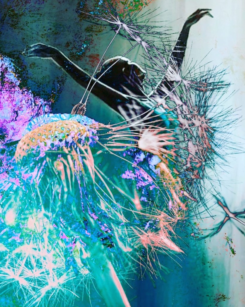I love the grace of dancers, as I personally have none, the movement … I also love flowers, wild flowers are close to my heart I have used these two elements in these dancer works.