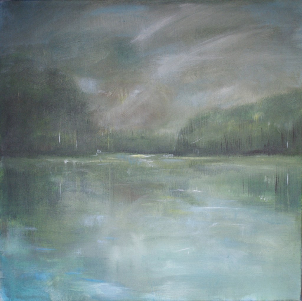 Green Abstract is a mixed media artwork presenting an abstract painting. The predominant color scheme consists of various shades of green, complemented by subtle touches of blue and white. The piece showcases a textured surface, blending organic and geometric shapes. Its composition is characterized by a chaos, with layered elements that add depth and intrigue.