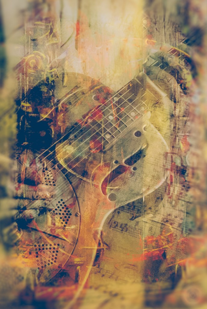 Artwork of instruments. The instruments are artwork by themselves, but here is one of my interpretations of the theme of music. Flow, colorful images that the music inspires and the instruments bring to me, notes. I was commissioned to do something music related and I did several variations. I am going to post some of them.