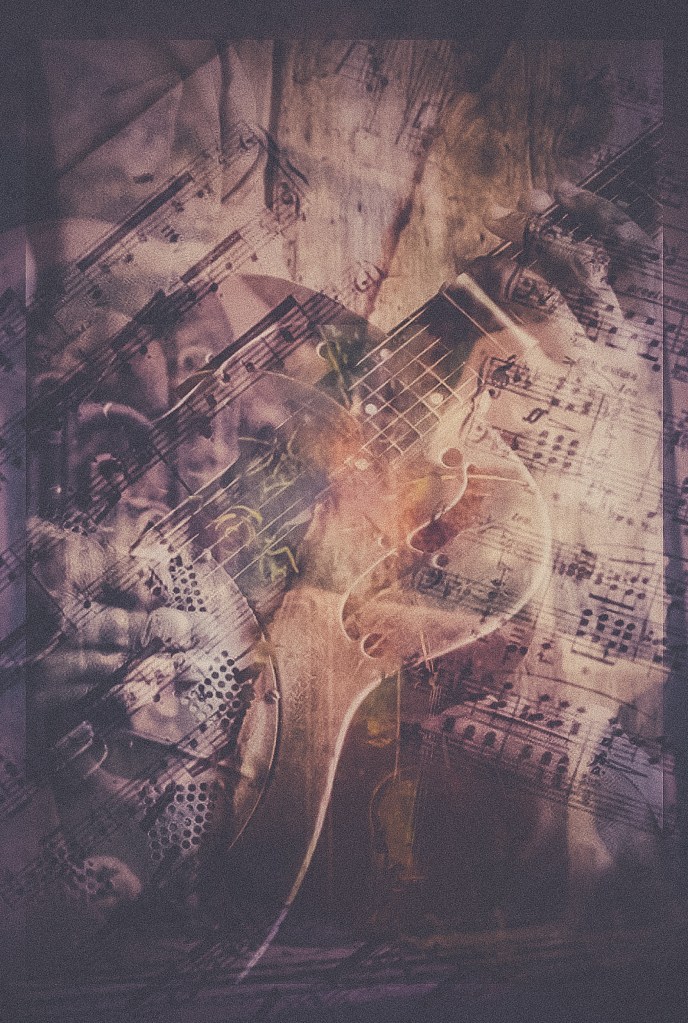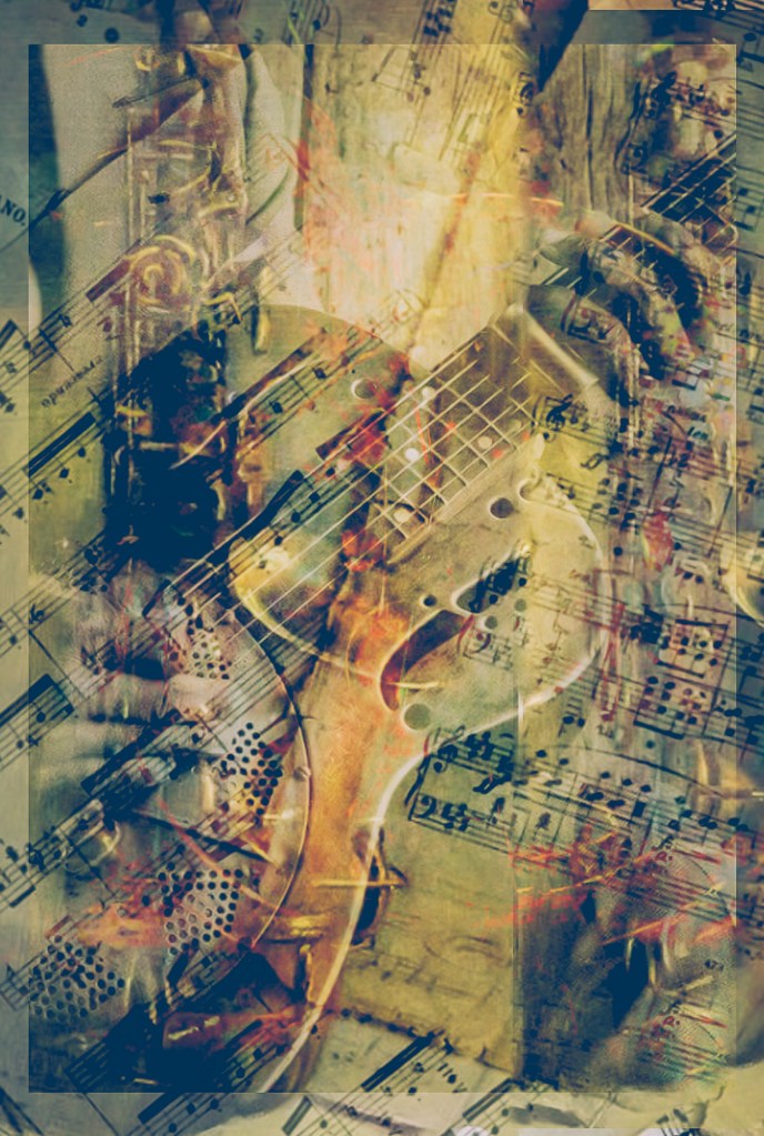 Artwork of instruments, the instruments are artwork by themselves, but here is one of my interpretations of the theme. Flow, colorful images that the music inspires, notes. I was commissioned to do something music related and I did several variations. I am going to post some of them.