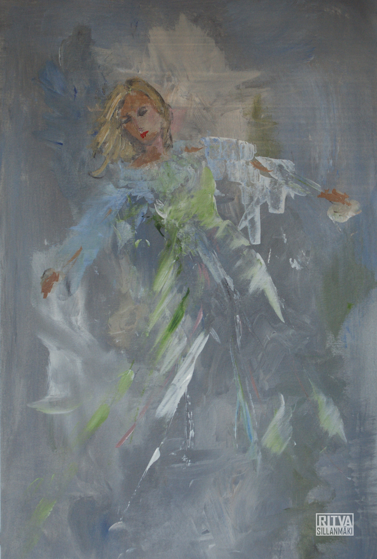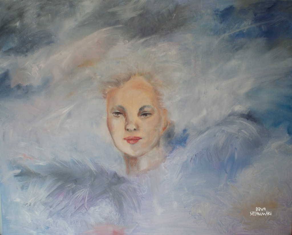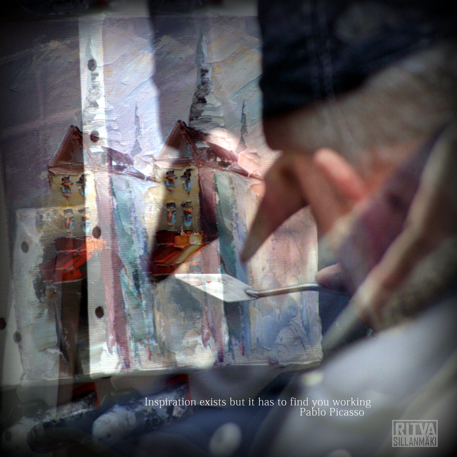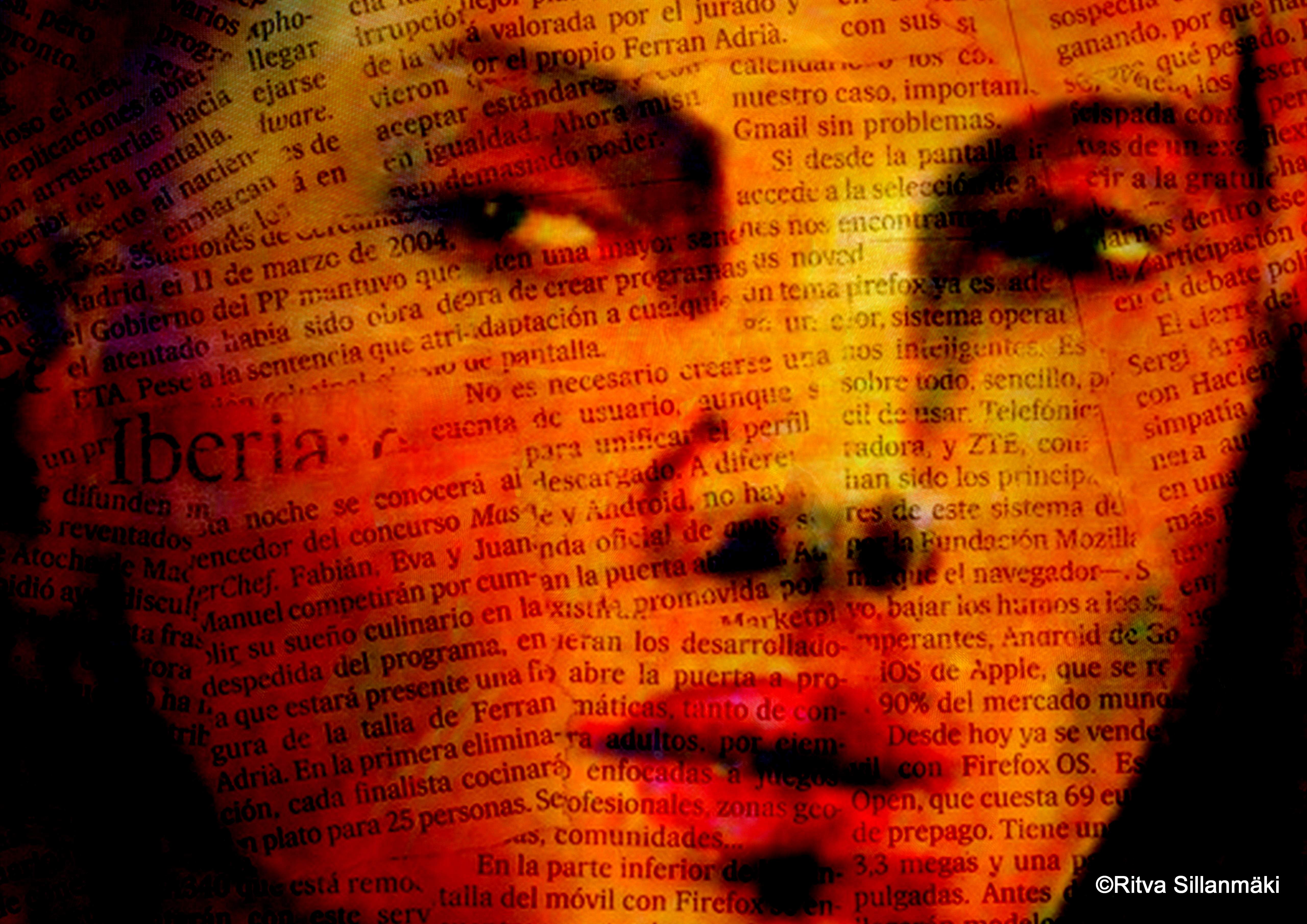 I started with this painting of mine(above) and added effects to it. text, fabrics, them played with tones and shadows etc.