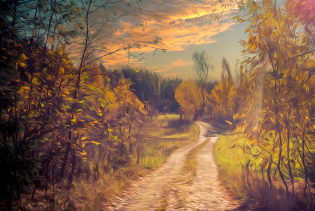 This is done from a photograph of mine of the road leading to my summer house. I played with it and came up with this traditional type of landscape painting. What do you think?