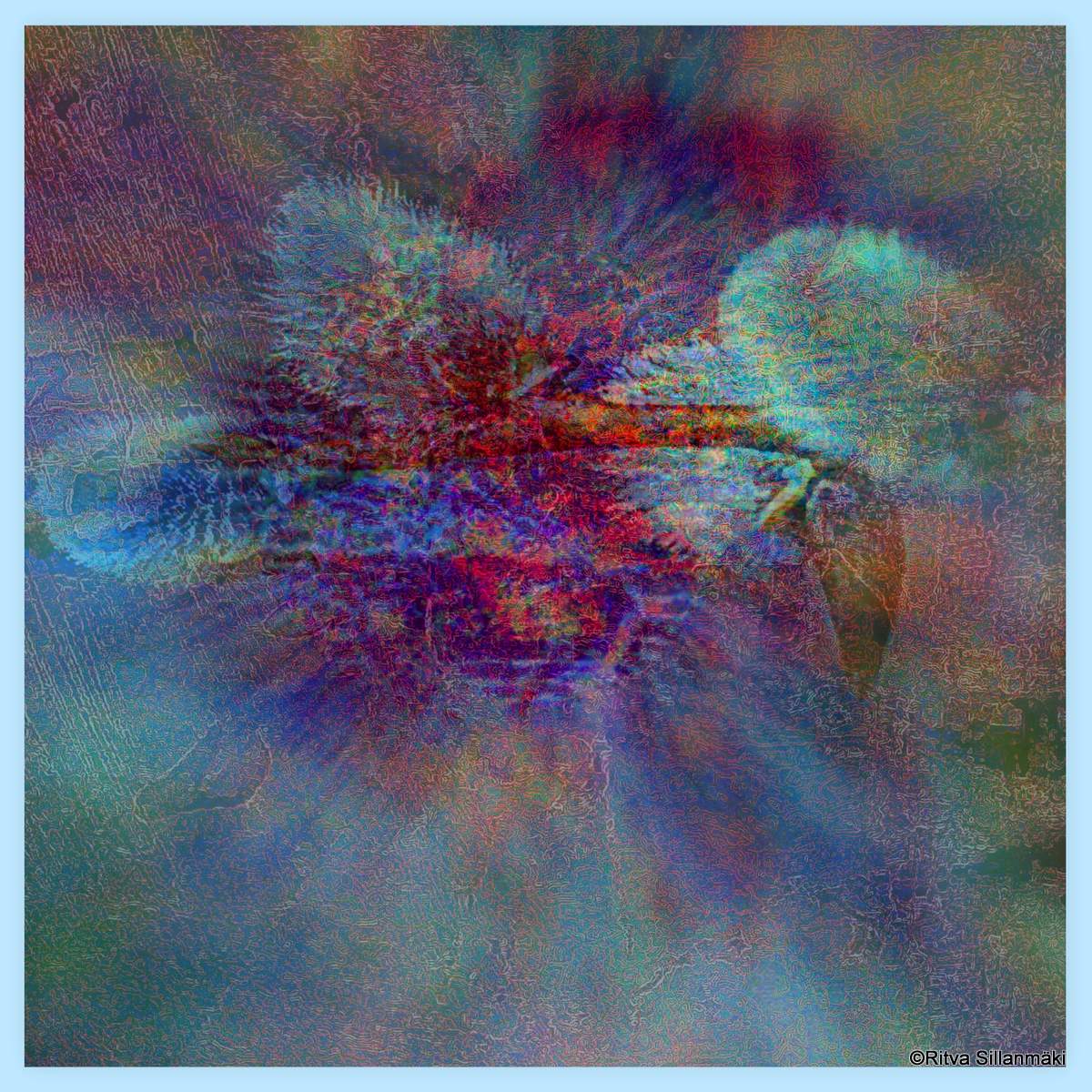 I have used about seven layers of to create these images and used three photos of mine as the inspiration and base for it. I hope you enjoy the splash of color in the end result.